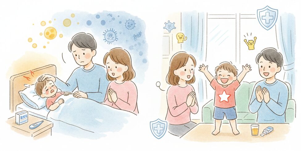 我が子が熱で苦しそうにしている姿、見るに耐えませんよね。